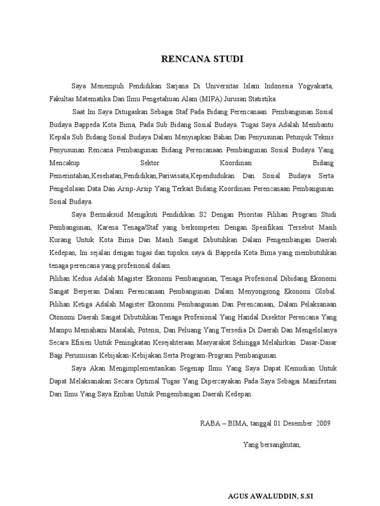 Putra, 2017 saya adalah salah satu orang yang bangga dilahirkan di nusantara. Program studi ini merupakan hasil kerjasama lemhannas ri, dephan ri dan universitas gadjah mada pada tahun 1989 yang kemudian diperkuat … 10.03.2018 · beasiswa umggulan contoh proposal rencana studi beasiswa unggulan s2 halo semuanya balik lagi bersama kita kabar beasiswa, siapakah disini yang ingin mendapatka 09.01.2021 · beasiswa ini ditujukan bagi anda yang baru menempuh semester pertama studi s1 di sejumlah perguruan tinggi mitra tanoto foundation. Esai tentang rencana studi dari pelamar beasiswa akan menjadi bahan pertimbangan bagi sponsor beasiswa dalam memprediksi "impact" beasiswa yang akan diberikannya pada si pelamar itu.