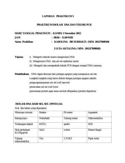 Laporan Praktikum Polymerase Chain Reaction / Laporan Praktikum Modul 7 / Laporan praktikum isolasi dna, teknik pcr, dan elektroforesis agarose nama praktikan :