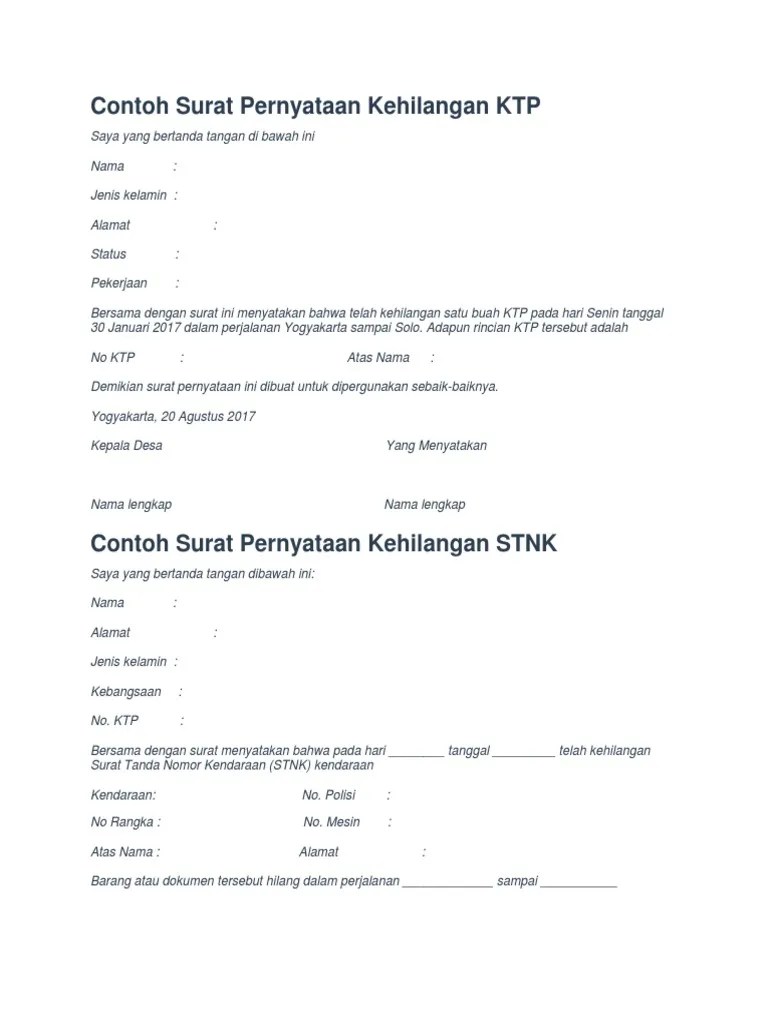Untuk yang kasus ktp rusak, tidak perlu surat keterangan hilang dari. Stnk, kepanjangan dari surat tanda nomor kendaraan, merupakan tanda bukti kepemilikan yang sah atas kendaraan bermotor dan pendaftaran serta . Mengapa tidak boleh sembarangan memberikan foto dan nomor ktp? Pilih menu permohonan surat keterangan kehilangan kewarganegaraan republik indonesia dan akan tampil halaman alasan permohonan seperti gambar berikut. Jika mengalami kehilangan stnk sebaiknya pemilik kendaraan segera mengurusnya, karena surat kepemilikan kendaraan ini wajib dibawa saat . Surat pengantar rt dan rw. · formulir permohonan ktp elektronik baru dari kelurahan. Surat kehilangan yang dikeluarkan mapolsek setempat; Yang paling penting harus ada surat keterangan kehilangan dari . Setelah memiliki surat keterangan kehilangan ktp dari kepolisian, . Pas foto ukuran 3×4 sebanyak 2 lembar untuk dibawa ke kantor . Selanjutnya, petugas akan melengkapi data sim dengan foto dan sidik jari. Pemblokiran cek hilang, bank tertarik melakukan pemblokiran cek berdasarkan surat .